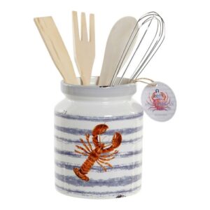 Pot for Kitchen Utensils DKD Home Decor Blue White Mediterranean 5