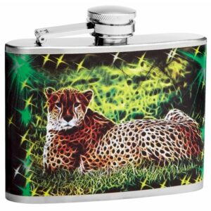 Do you love leopards or are you just a big fan of the entire big cat family? If you are, here is a flask that is just as pleasing to the eye as it is to the heart. This flask features a big mystical leopard surrounded by yellow stars and grass. The whole flask seems...