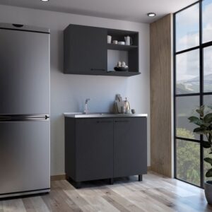 Alexandria 2 Piece Kitchen Set, Wall Cabinet + Utility Sink, Black