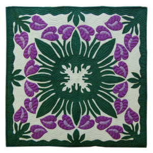 42″ Hawaiian Quilt Wall Hanging – Purple Anthurium Design